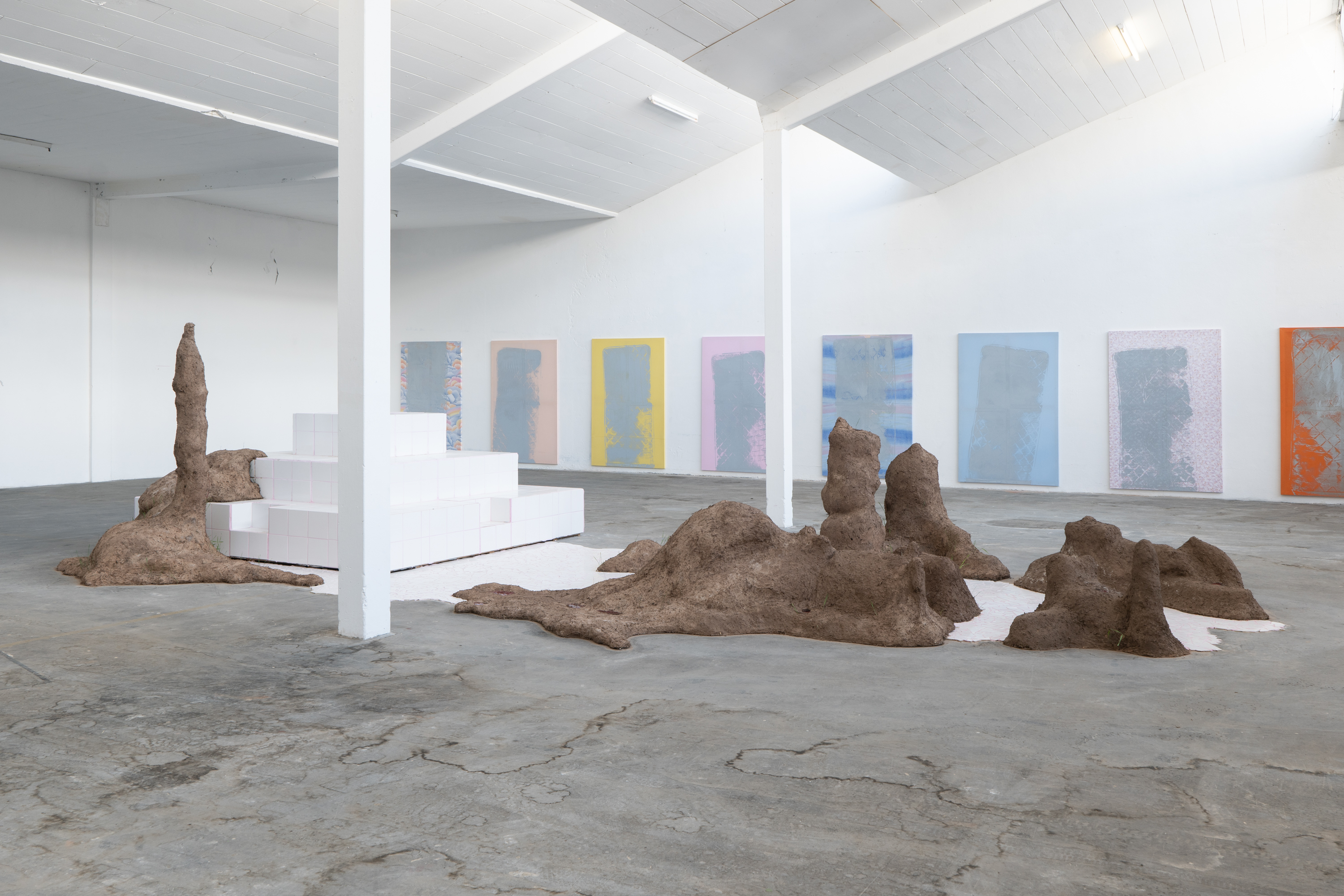 Cette proposition a démarré il y a un an, découvrant dans les bois un monument fort particulier, caché, commémorant une guerre, devenu lieu de culte pour l’extrême droite. La décision était alors de reproduire son socle et de lui trancher l’obélisque. Naquît alors un second monument. Nous avons célébré avec humour ce nouveau venu. Suite à cela, la structure s’est peu à peu désactivée. L'eau s’est écoulée sur le sol, les joints ont craqué. Plus tard, dans l’espace voisin, un homme tourmenté sonna une cloche durant huit heures. Aujourd’hui, ces expériences se rencontrent, proposant au spectateur d’observer le paysage hypothétique du cours d’eau, liquide devenant solide, un moment de cristallisation.