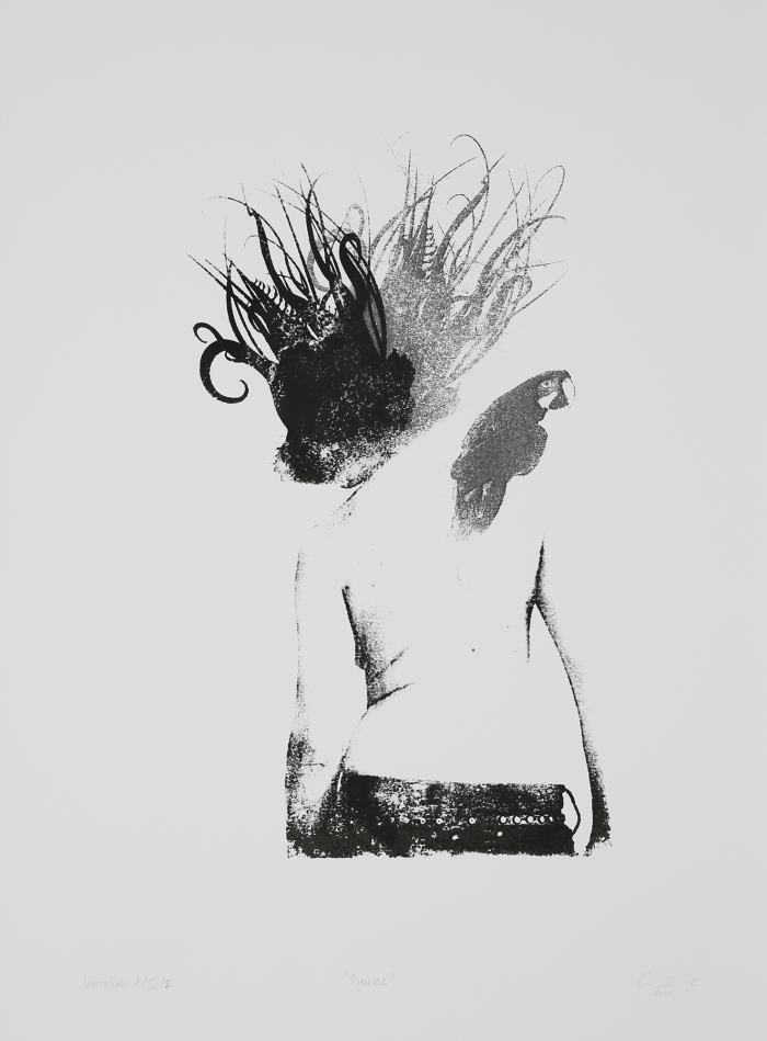 Series of 5 variations in black and white screen printing and acetone transfer